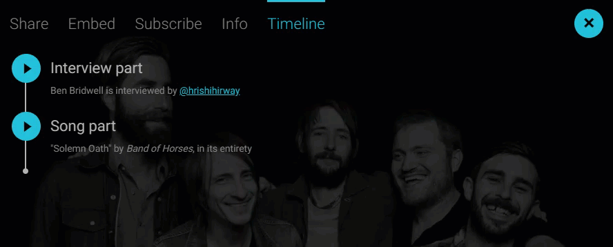 The Backtracks Player™ now has a new ability to have embedded annotations and chapters directly in the player. The feature can be used as chapters, annotations, timelines, or points of interests that enable the listener or user of the player to navigate to specific points in time of the audio with a click or tap while having context about that portion of audio. This Backtracks feature even comes with the ability to have links and images time synchronized with the chapter (i.e. audio/visual podcast storytelling).